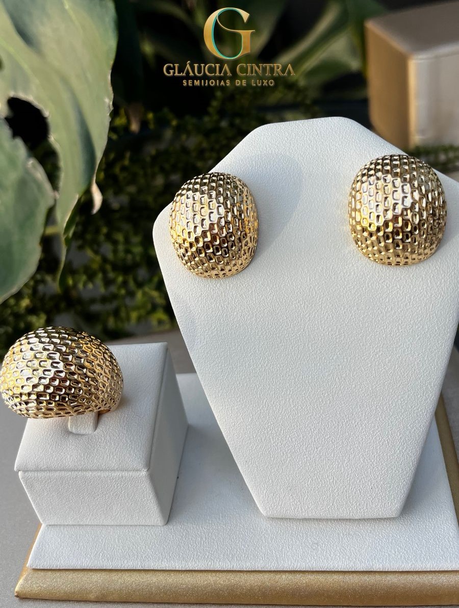Conjunto banhado no ouro 18 K com design texturizado deslumbrante e moderno.