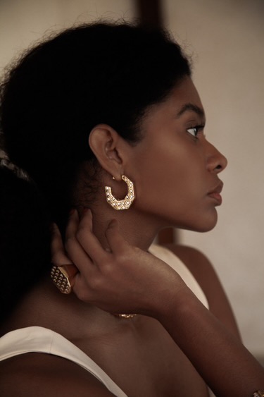 Conjunto banhado no Ouro 18K. com designer geométrico.